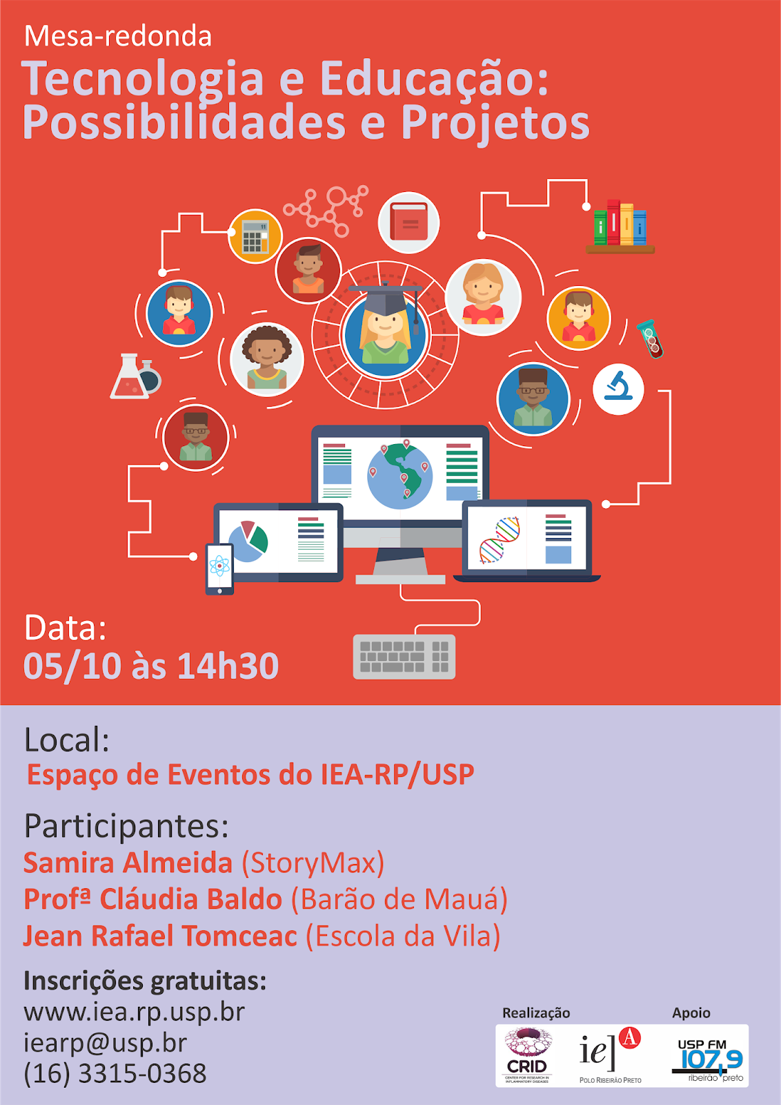A atividade será realizada no Espaço de Eventos do IEA-RP e debaterá como os recursos das tecnologias da informação e comunicação (TICs) podem ser utilizados para estimular o interesse pelo universo científico e como o letramento digital dialoga e interage com a aprendizagem escolar.